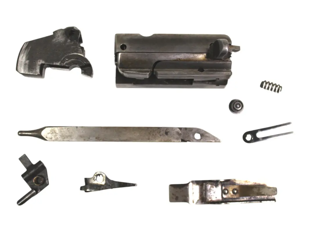 Lot de pièces : Culasse avec manette et extracteur, verrou, bielle, arretoir, bouton...